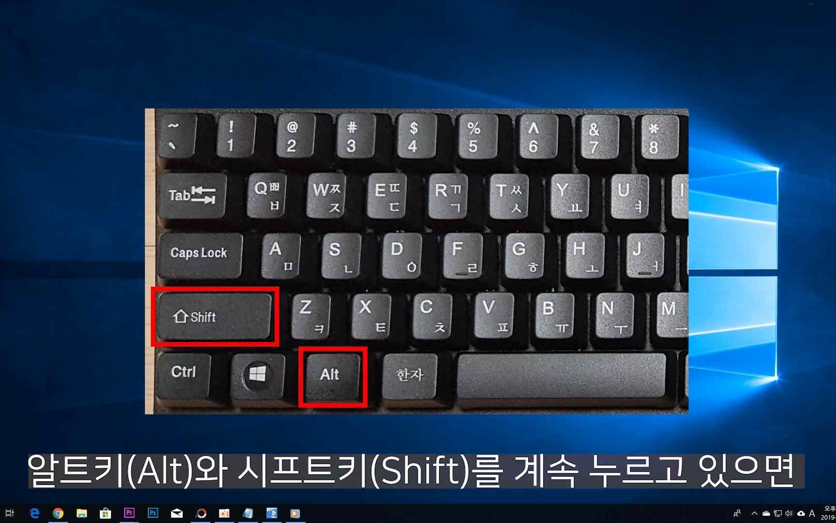 오늘 강좌도 방법은 아주 간단합니다. 바탕화면에 있는 아이콘이나 시작 메뉴에 있는 아이콘 둘 다 방법은 동일합니다. 해당 아이콘을 클릭하면 프리미어 프로가 실행되는데요. 클릭하자마자 키보드에 있는 알트키(Alt)와 시프트키(Shift)를 동시에 누릅니다.